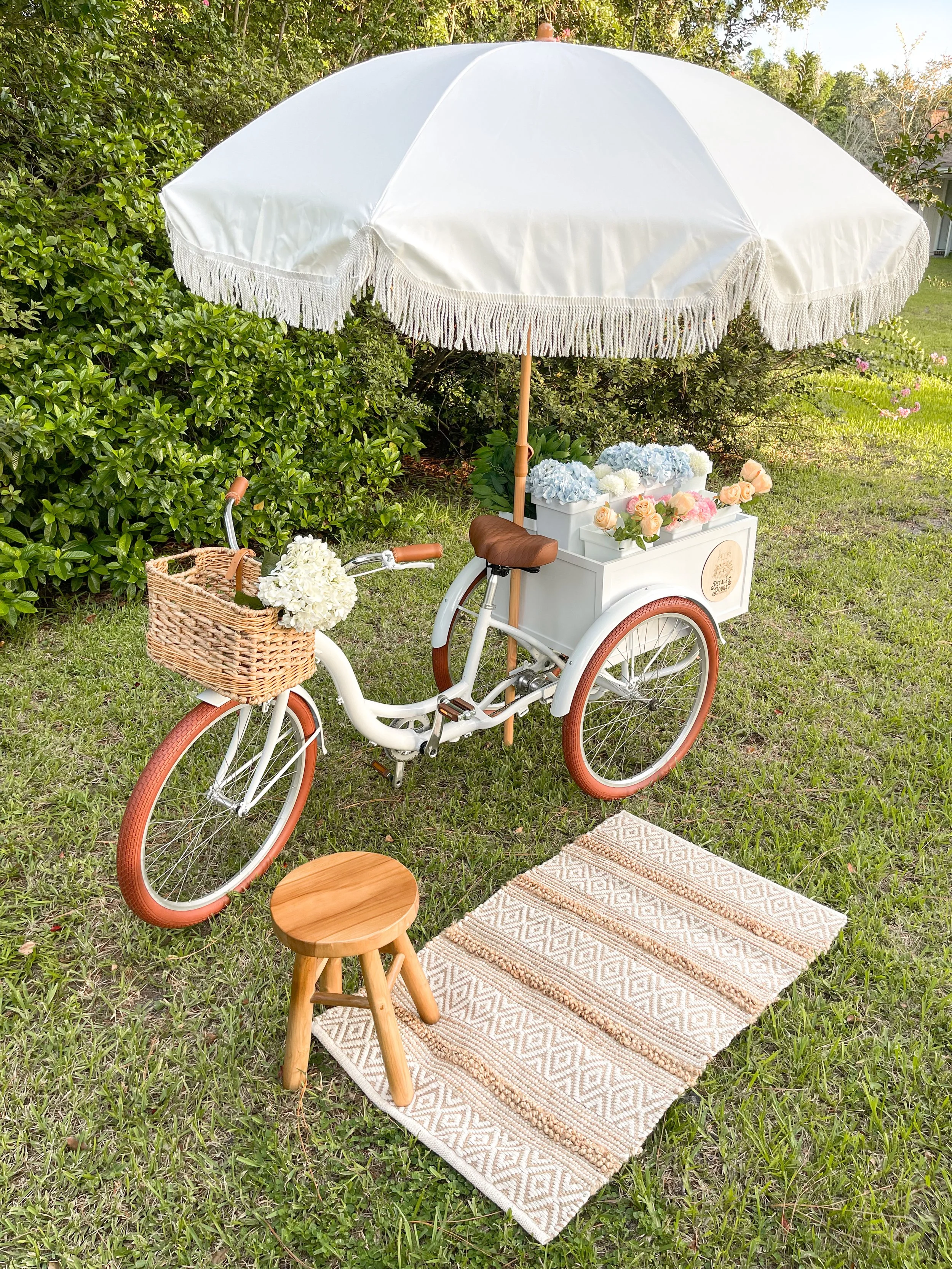Our charming petal trike rental adds a touch of beauty and joy to any special occasion. Whether it’s a wedding, baby shower, birthday, or intimate gathering, our thoughtfully styled trike comes with fresh florals, personalized details, and all the little touches to make your event feel extra special. We handle the setup, styling, and pickup—so all you have to do is enjoy the magic. Looking for a more budget friendly option? Contact us today!